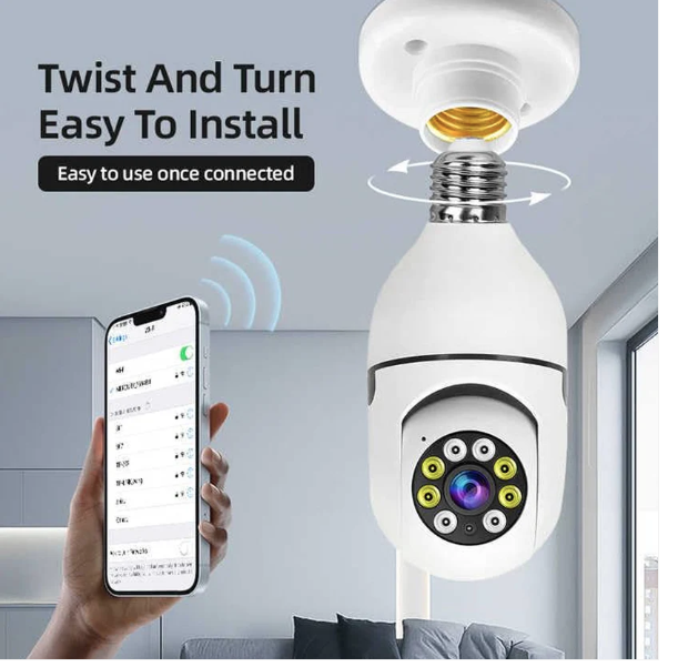 • 𝟑𝟔𝟎 ° 𝐕𝐢𝐞𝐰𝐢𝐧𝐠 𝐀𝐧𝐠𝐥𝐞 360 degree fisheye lens of this bulb camera gives you an extra wide viewing angle without blind spots and also the 3D perspective which makes it the ideal bulb camera to monitor your property permanently.; 𝟐 𝐖𝐚𝐲 𝐀𝐮𝐝𝐢𝐨 & 𝐈𝐑 𝐍𝐢𝐠𝐡𝐭 𝐕𝐢𝐬𝐢𝐨𝐧 :This pet camera has built-in 48dB microphone & speaker and anti noise technology. The fluent sound allows you to comfort or to your baby / pet / nanny when you are outside.
